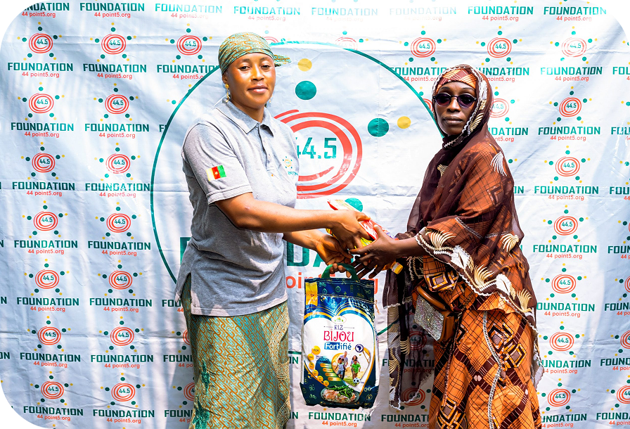 In response, the 44.5 Foundation organizes bimonthly food drives to support those enduring these hardships. Held at the Bonaberi Muslim Chief’s Compound, the events attract large, hopeful crowds. Each drive provides essential items such as 5kg bags of rice, 1 liter of cooking oil, 1kg of pasta, and a pack of sugar to families in need.